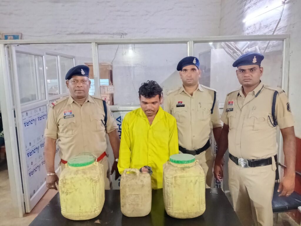 मामले के संक्षिप्त विवरण इस प्रकार है कि चेतना विरुद्ध नशा व प्रहार अभियान के तहत अवैध शराब बिक्री करने वाले के विरुद्ध कार्यवाही हेतु श्रीमान वरिष्ठ पुलिस अधीक्षक महोदय श्री रजनेश सिंह (भा.पु.से.) द्वारा निर्देशित किया गया है। आज दिनांक 18.06.2025 को जरिये मुखबिर से सूचना मिली कि सूरज धनवार नामक व्यक्ति ग्राम चिल्हाटी व कुटी के बीच स्थित जंगल में अवैध रूप से धनार्जन करने के उद्देश्य से भारी मात्रा में कच्ची महुआ शराब निर्माण कर बिक्री कर रहे हैँ, मुखबिर से प्राप्त सूचना से वरिष्ठ अधिकारिओ को अवगत कराया गया जिनके निर्देशानुसार व श्री राजेन्द्र जायसवाल (रा. पु.से.) अतिरिक्त पुलिस अधीक्षक शहर एवं श्री सिद्धार्थ बघेल (रा.पु.से.) नगर पुलिस अधीक्षक सरकंडा, श्री निलेश पाण्डे के मार्गदर्शन में टीम गठित कर ग्राम चिल्हाटी में रेड कार्यवाही करते हुये आरोपी सूरज धनवार पिता तीजराम धनवार उम्र 30 वर्ष के कब्जे से 02 नग 15 लीटर क्षमता वाला पीले रंग के प्लास्टिक डिब्बा में भरा हुआ 30 लीटर कच्ची महुआ शराब एवं 01नग 05 लीटर क्षमता वाली प्लास्टिक डिब्बा में भरा हुआ 05 लीटर कुल 35 लीटर अवैध महुआ शराब कुल कीमती 7000 रु व बिक्री रकम 320 रु जुमला रकम 7320 रु को जप्त कर विधिवत गिरफ्तार कर न्यायिक रिमांड पर भेजा गया है।
