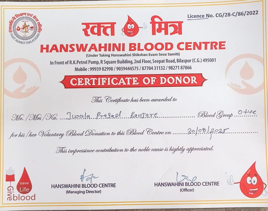 उन्होंने कहा कि “रक्तदान महादान है, यह किसी के जीवन को बचाने का सबसे बड़ा पुण्य कार्य है। युवाओं को चाहिए कि वे स्वस्थ रहते हुए नियमित रक्तदान कर समाज की सेवा करें।”
