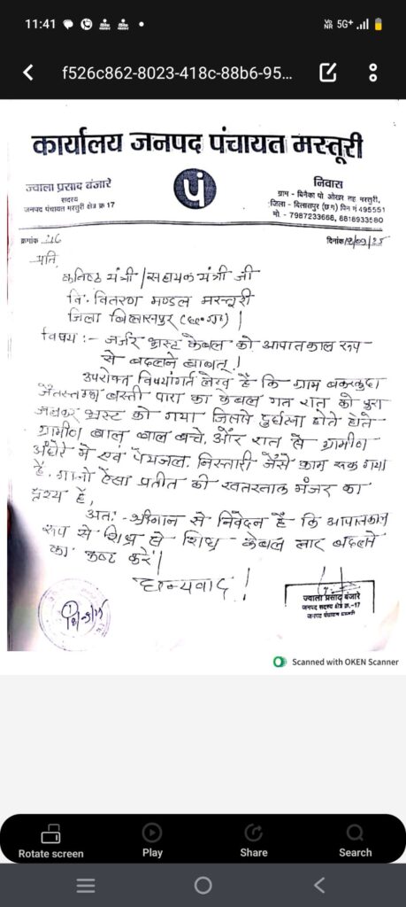 ज्ञापन में विभाग से साफ कहा गया कि अति जर्जर केबल को शीघ्र बदला जाए ताकि ग्रामीणों को निर्बाध और सुरक्षित बिजली आपूर्ति मिल सके। साथ ही चेतावनी दी गई कि यदि समय पर कार्रवाई नहीं हुई तो बड़े स्तर पर आंदोलन करने के लिए बाध्य होना पड़ेगा।